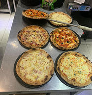 Retrait des commandes dans notre camion pizza sur notre parking.